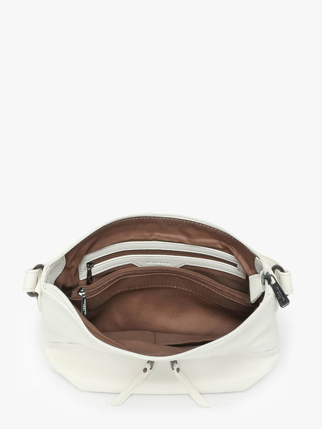 Sac bandoulière de la ligne gracieuse signé Hexagona. Moderne et pratique, ce modèle sera parfait pour vos journées les plus trépidantes. Son intérieur se divise en deux espaces de rangements séparés par une poche à fermeture zippée. Pratique pour avoir vos petits effets à portée de main, il est doté de deux poches zippées extérieures.